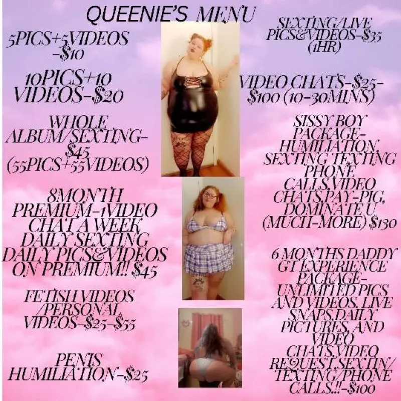 Hey Queenie Moonπ here!!οΈ To offer you your every day phone needsπ±π² (only meet with daddy package clients must subscribe) currently daddy package is on sale for $60 π»π«’ππ» and I also sell pictures videosππ± video chatsπ± Sexting/textingπ±/phone sexπ±π and I make custom videosππ₯° I have lots of content just ask along with my extended packages.also ask about my $7 onlyfans or π link postedπ₯°π₯°π«’I look forward to pleasing you and your every day phone needs ππ±π»π«’π» add my Snapchat:moonrumph or text/call π«’π±π